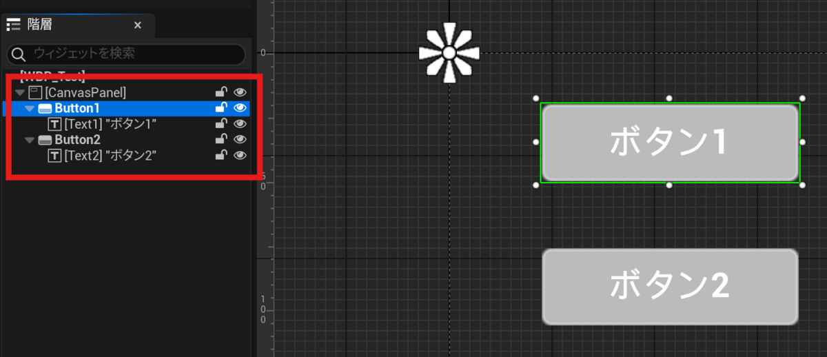 ここで注意しないといけないのはキャンバスパネルの孫にあたる [Text1] と [Text2] にはアンカーが表示されません。